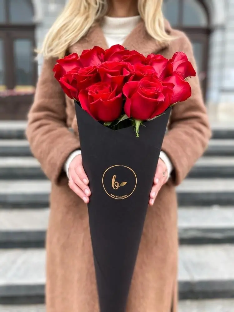 • Moder stožec z vrtnicami je moderen šopek vrtnic, ki so zavite v posebno nepremočljivo vrečko in zdržijo 24 ur. Po 24 urah priporočamo, da cvetove obrežete in jih prestavite v vazo.